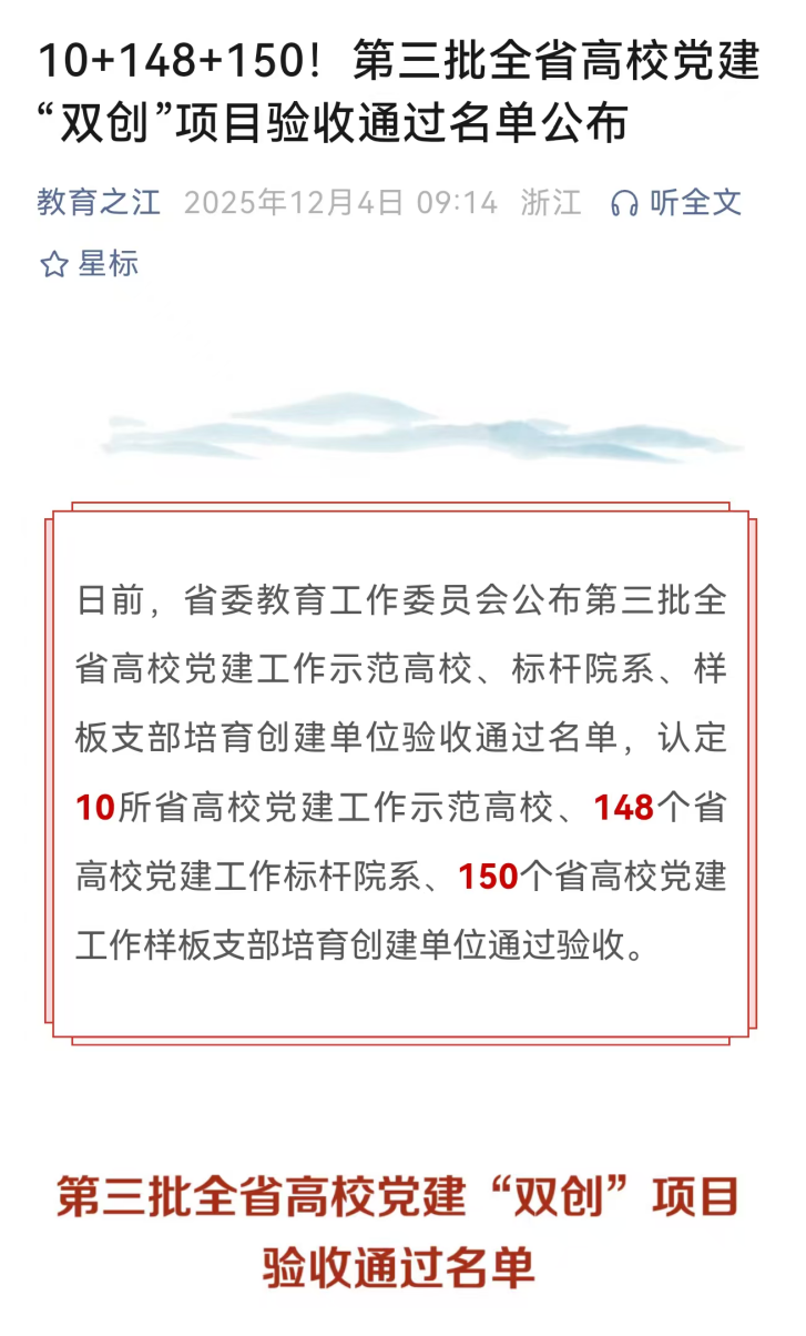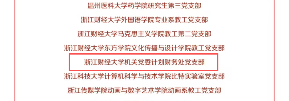 近日,浙江省委教育工作委员会公布第三批全省高校党建工作示范高校、标杆院系、样板支部培育创建单位验收通过名单,计划财务处党支部凭借扎实的党建基础、鲜明的品牌特色和突出的融合成效,成功通过省高校党建工作样板支部验收。